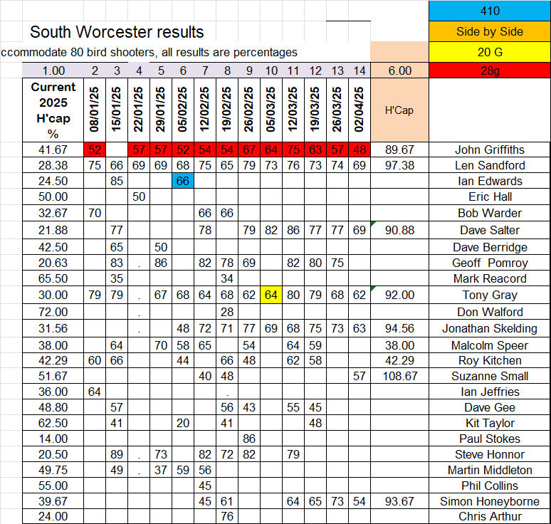At Blackbrook, the squad put in a clear improvement this week with everyone beating their average. Top scorer was Roy Kitchen with a 61% kill rate closely followed by Mark Reacord, just two targets behind. Dave Gee was just one more target adrift. Handicp winner was Dave Gee, with Mark and Roy taking the second and third places. A super improvement Dave, let’s keep it going.