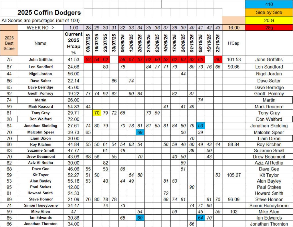 The scores, (mine included) were low, suggesting that a tricky course had been set up this week. Steve Honner was top scratch gun with 75 broken targets. My miserable 66 entitled me to runner up place. John Griffiths, another 6 further back, took the third spot. Handicap winner, with a clear 5 point improvement on his average, was Kit Taylor. Well done Kit. Mike Allen took thr Handicap runner up position, beating his current average by 2 clear points. Third place, just half a point behind, was John Griffirhs. A good day’s shooting, but let’s hope next weeks targets are a little more forgiving.