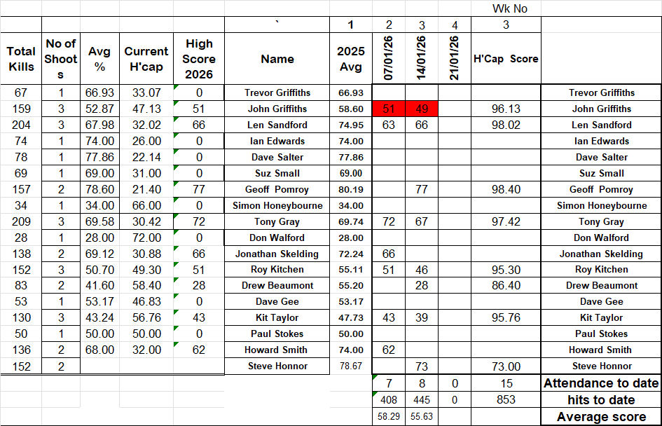 The fact that no one beat their average score rubbed that fact in. The low driven on stand 3 and the high crosser on stand 4 each caught many of us out. Geoff Pomroy was back and shooting with a vengeance.His 77 was top scratch score, beating Steve Honner by 4 targets. Tony Gray took the bronze position a further 6 hits behind. Geoff’s score also earned him the Gold Handicap position with Len just a fraction behind in Silver place. Tony Gray filled in the handicap third place.